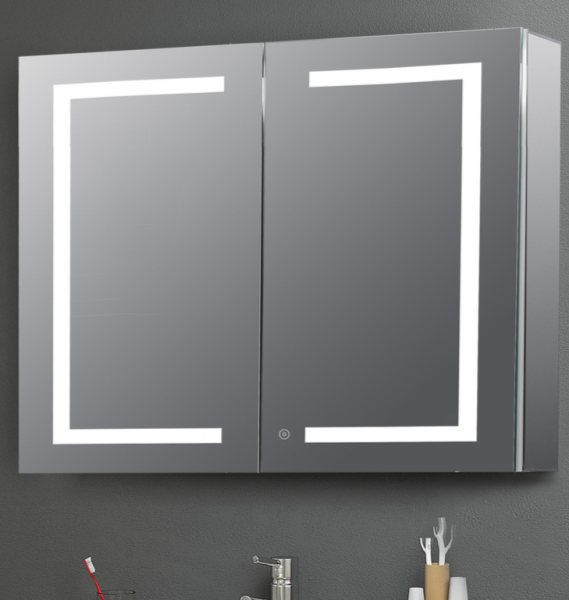 -Daylight White LED lighting -On/off touch switch -Soft closing doors -Two adjustable glass shelves -Aluminum cabinet -2 x USB outlets -SAA approved -IP44 rating